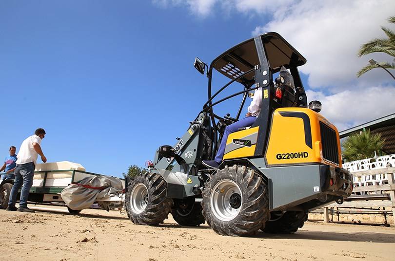 La nouvelle chargeuse articulée G2200 est une machine légère dotée d'un moteur Kubota fiable de 26 ch (Stage V). Les 4 roues motrices hydrostatiques avec direction automotive et essieux de 6 tonnes assurent une force de traction de 12 600 N! La large gamme d'accessoires garantit que cette chargeuse sur pneus peut être utilisée pour une grande variété d'applications.