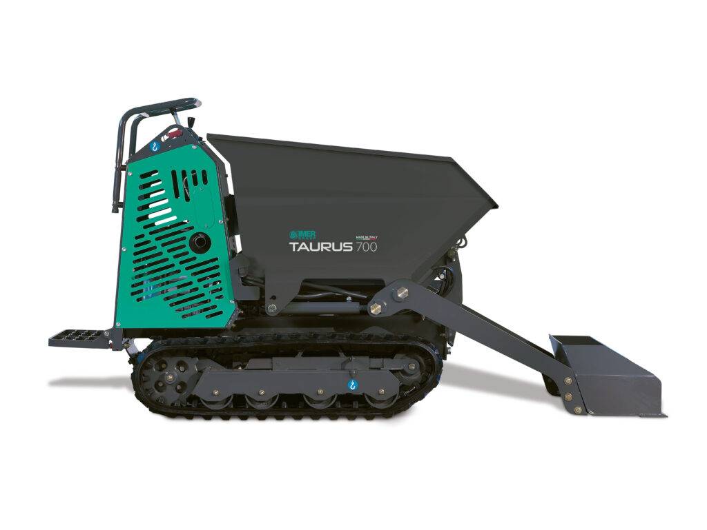 Le TAURUS 700CP offre une charge utile impressionnante de 700 kg. Il est généralement équipé d'un moteur thermique performant (disponible en version essence Honda GX 270 de 6 kW ou diesel Yanmar L100), garantissant une force de traction constante. Sa transmission hydraulique à deux vitesses permet des déplacements fluides et rapides, même à pleine charge.