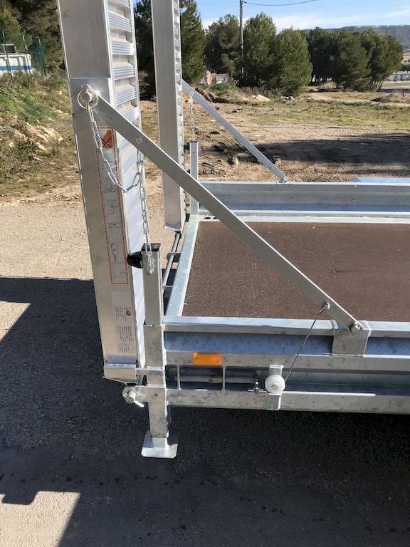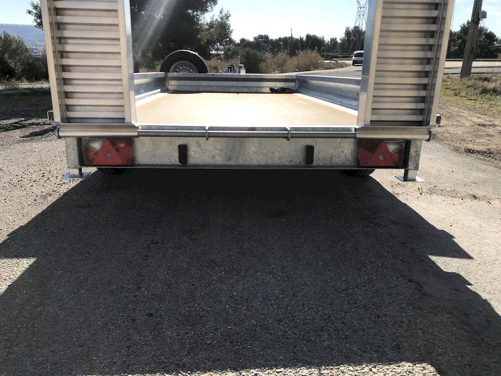Double essieux, avec des dimensions et des charges utiles adaptées, ces remorques porte engins proposent en série des ridelles monocoques, un plancher toute largeur, des béquilles arrière de chargement automatique, des rampes aluminium réglables en largeur, un timon réglable ou un timon droit.