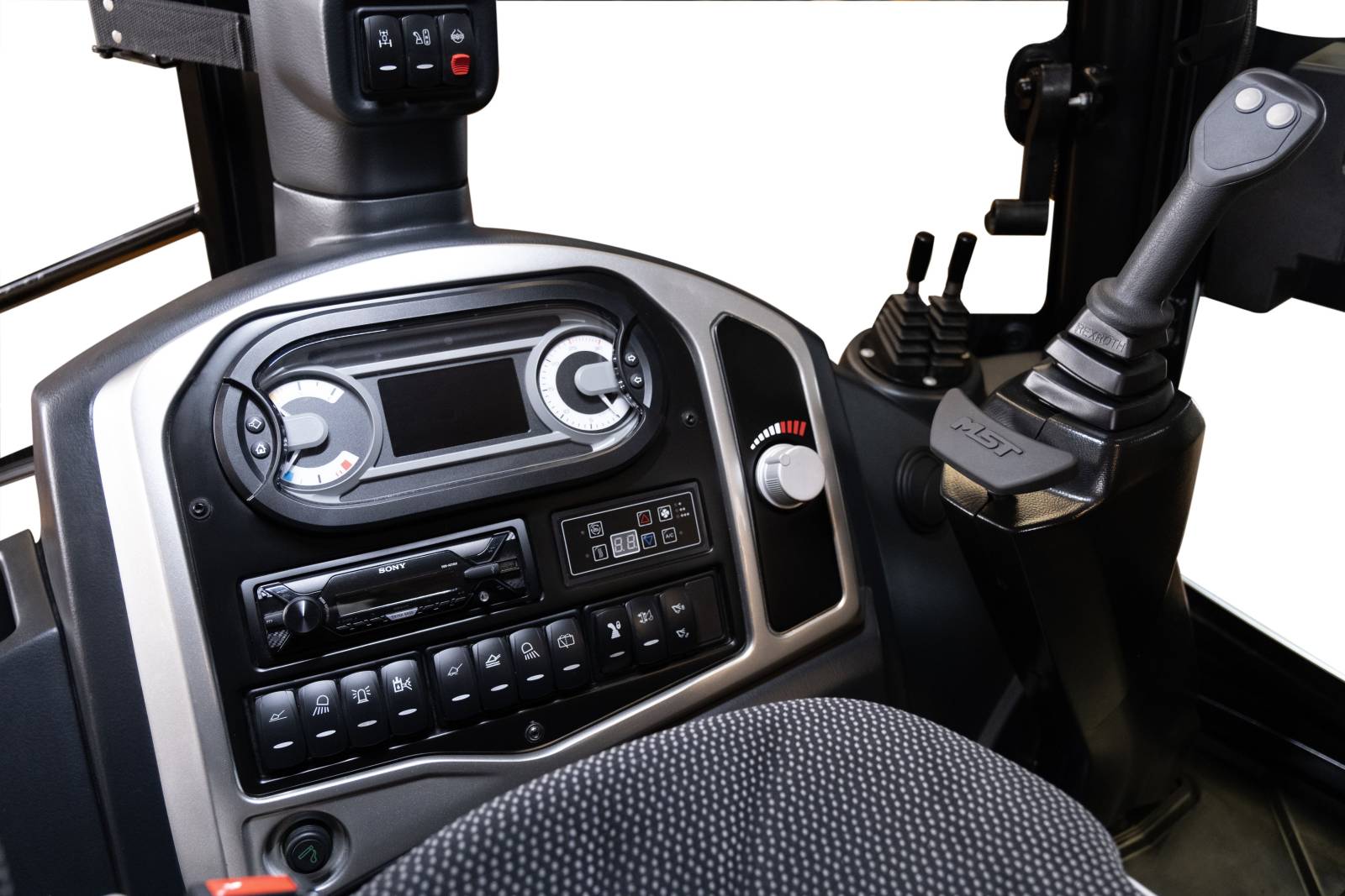 Il dispose d'une cabine ronde, de la climatisation intégrée et de commandes joystick.
