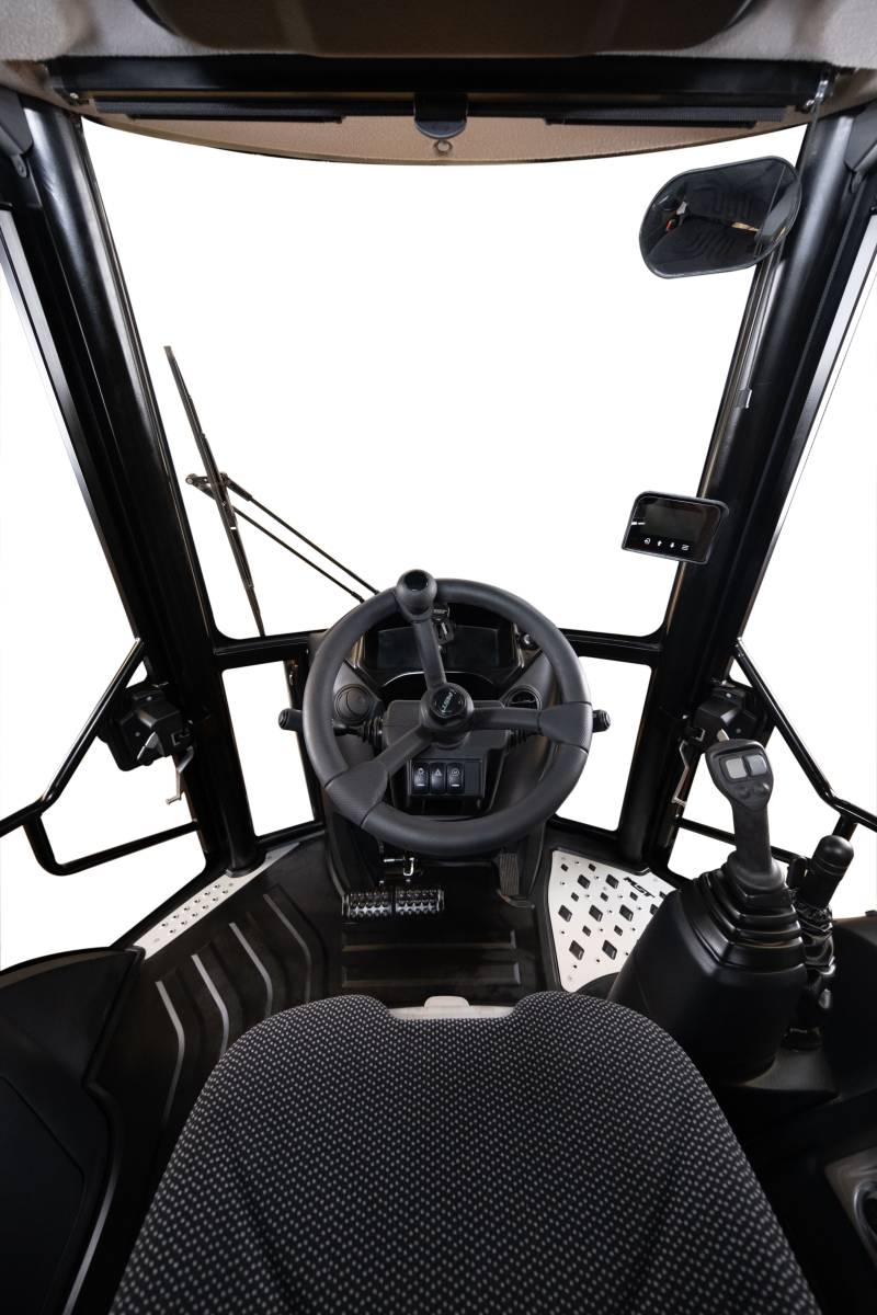 Il dispose d'une cabine ronde, de la climatisation intégrée et de commandes joystick.